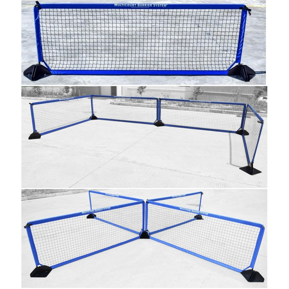 The MultiCourt Barrier system Pickleball Court Package is an easy-to assemble, weather resistant, scalable barrier system. Create temporary and portable containment fences for one court, two courts or a whole tournament’s worth of courts. Its durable metal poles slide into thick sleeves to hold the barrier net. Heavy-duty bases and base adapters can be configured for multiple layouts